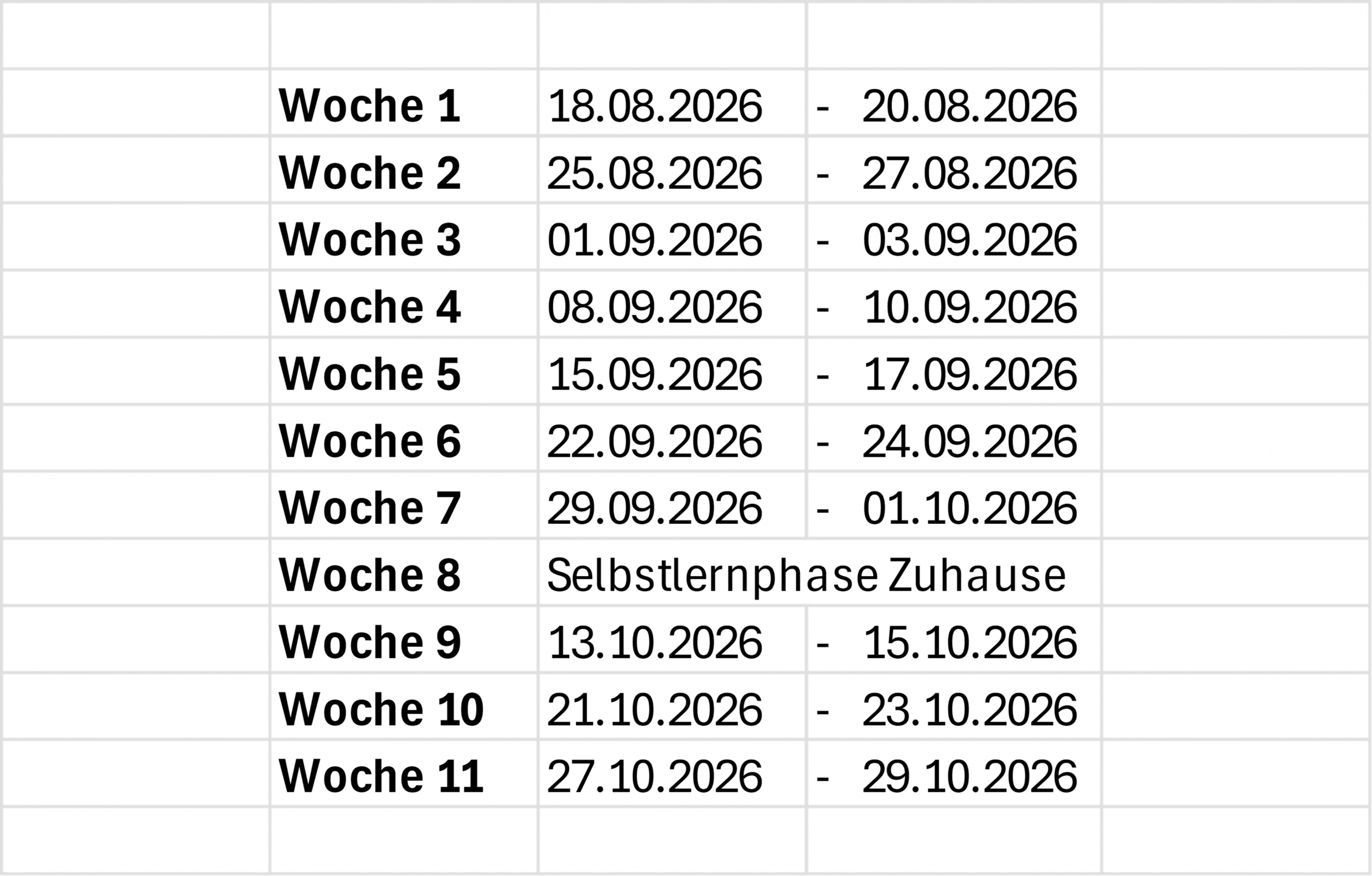 18.08.2026 – 29.10.2026 genaue Termine hier